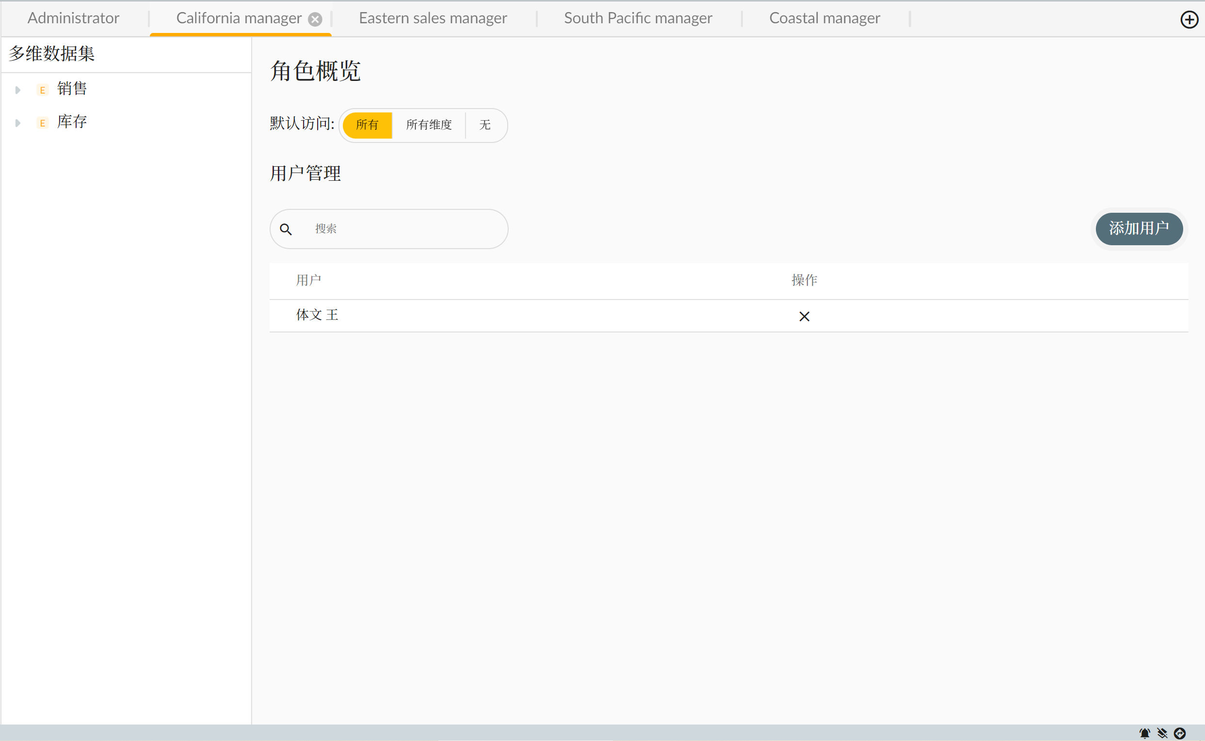 - 所有: 用户可以访问语义模型中的所有多维数据集.