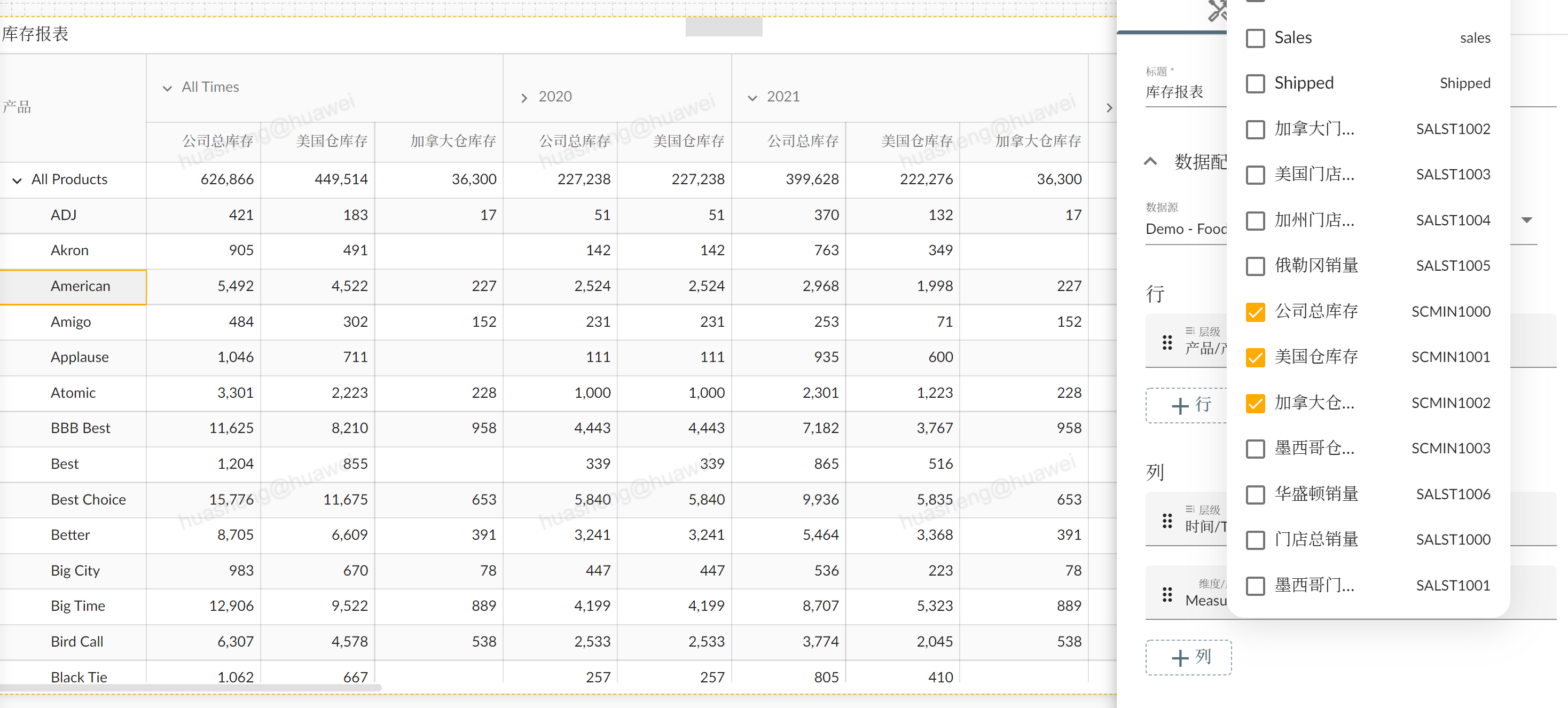 数据透视表格除了 通用的表格配置 外还有以下数据透视相关的设置: